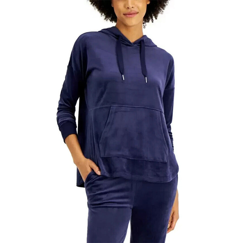 Alfani Velour Only Hoodie Pajama Top Navy XS