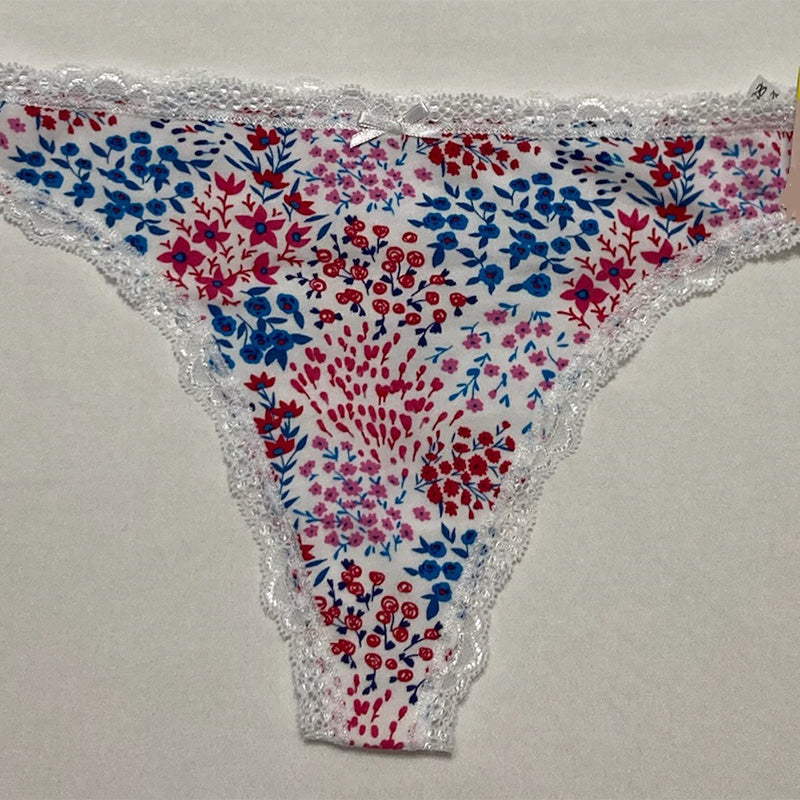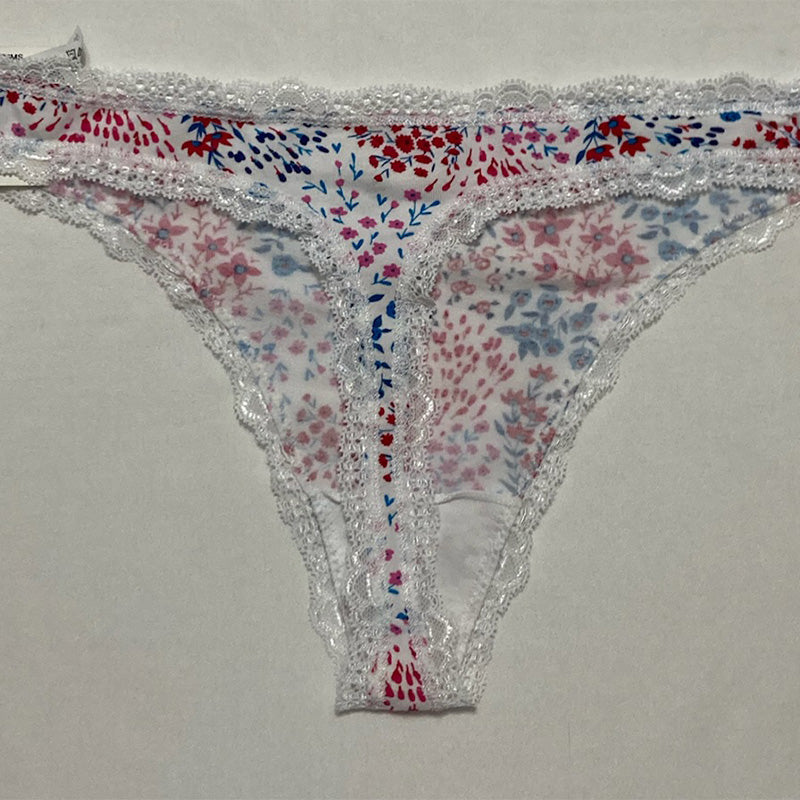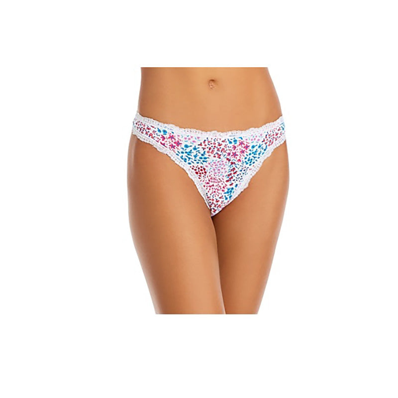 AQUA Intimates Lace Trim Thong White Ditsy L