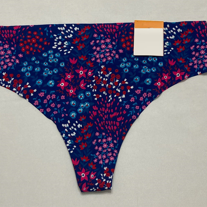 AQUA Intimates Stretch Thong Navy Ditsy Flor S