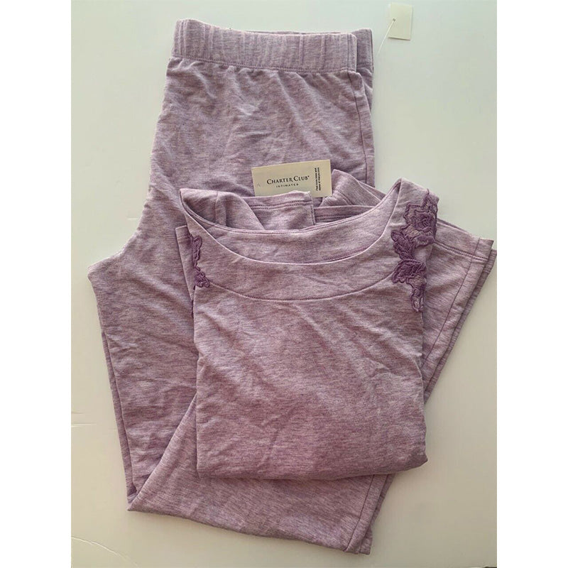 AS-IS Charter Club Women's Floral Embroidered Pajama Set, Lilac, M