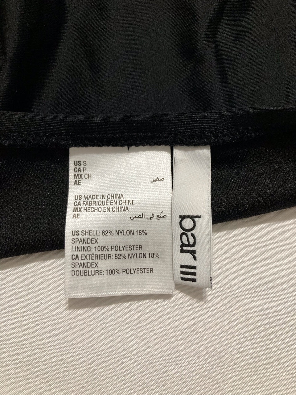 The product is a pair of Bar III Natural Beauty V-Waist High Leg Black Bikini Bottoms in size Small. Made of nylon material, these bikini bottoms feature a classic black color and a v-waist design. Ideal for women looking for a stylish and comfortable swimwear option, these bottoms can be hand washed for maintenance. Perfect for a day at the beach or pool, these bikini bottoms from Bar III offer a flattering and trendy silhouette.