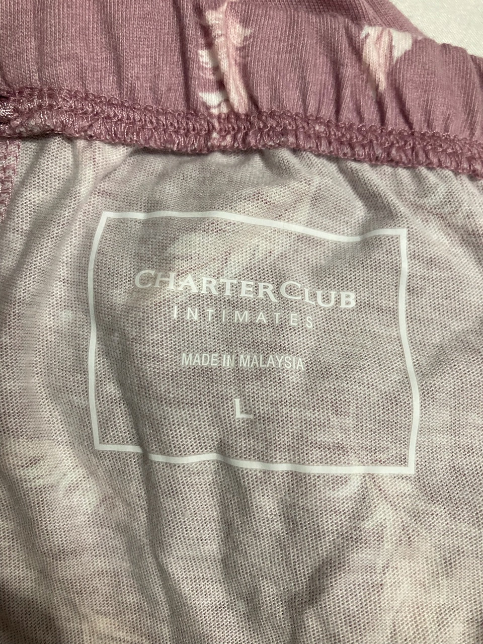 The Charter Club Feather Pajama Pants in Purple, size L, are a comfortable and stylish addition to any woman's sleepwear collection. These lightweight pants feature long sleeves, a drawstring closure, and are machine washable for easy care. Perfect for the colder seasons of winter, fall, and spring, these pajama pants from Charter Club offer both warmth and relaxation in a trendy design. Ideal for lounging around the house or getting a good night's sleep, these pajama pants are a versatile and cozy choice for any woman looking for quality sleepwear.
