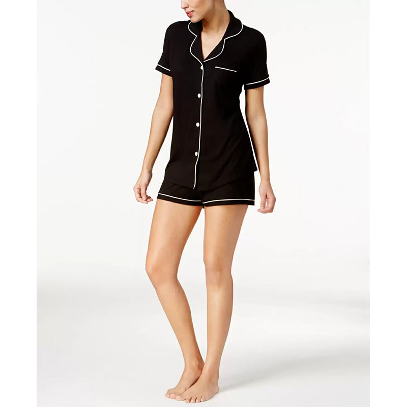 - Short-sleeve top features a lapel collar, button-front closure, short sleeves and a pocket at left chest