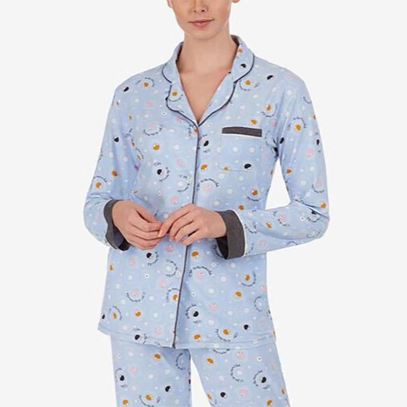 Cuddl Duds Printed Knit Only Notch Collar Top Blue L