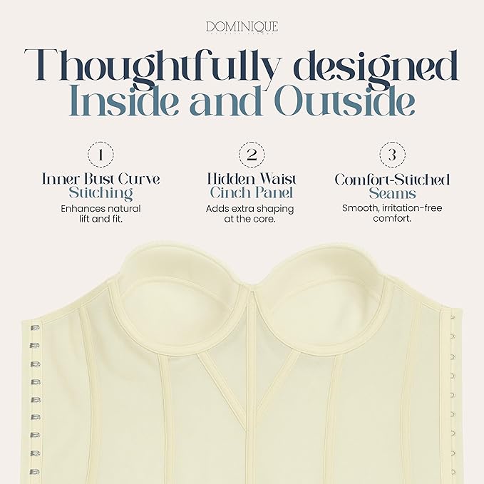 - Flattering Fit & Light Waist Cinching: Designed to sculpt and enhance, this strapless bustier gently cinches at the waist while providing full-figure support.