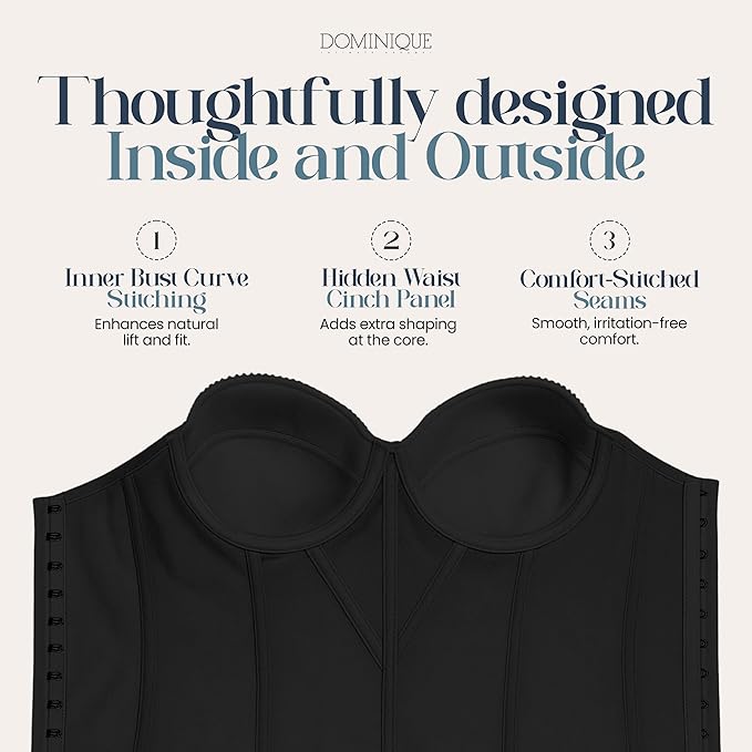 - Flattering Fit & Light Waist Cinching: Designed to sculpt and enhance, this strapless bustier gently cinches at the waist while providing full-figure support.