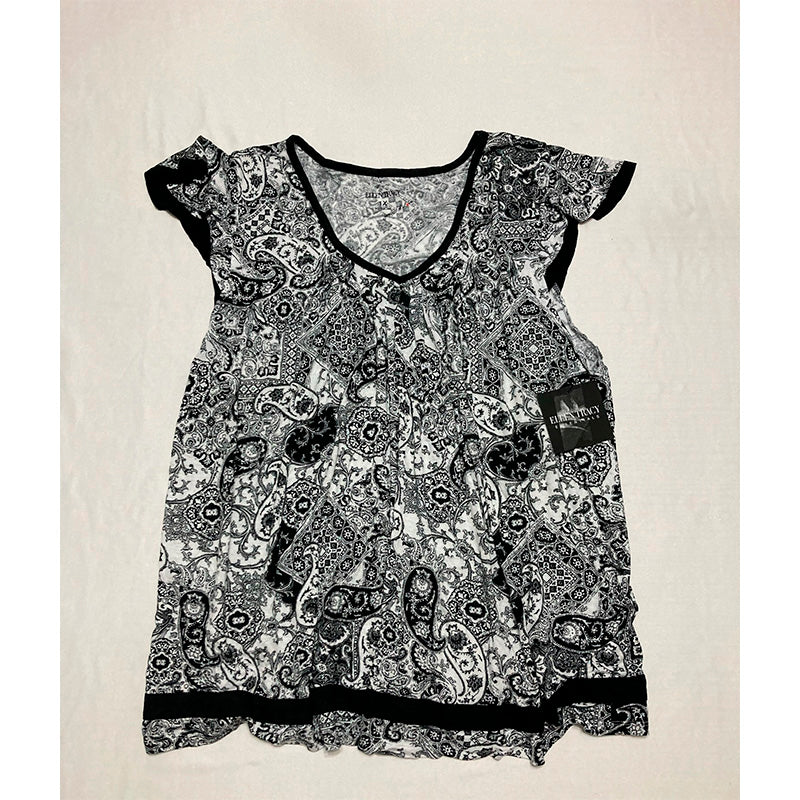 Ellen Tracy Women's Short Sleeve Flutter Top Paisley 1X