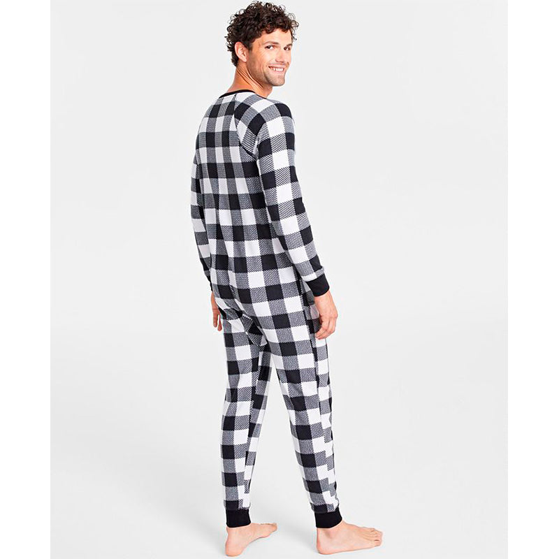 Family Pajamas Men's Checkered One-Piece Pajamas Buffalo Check L