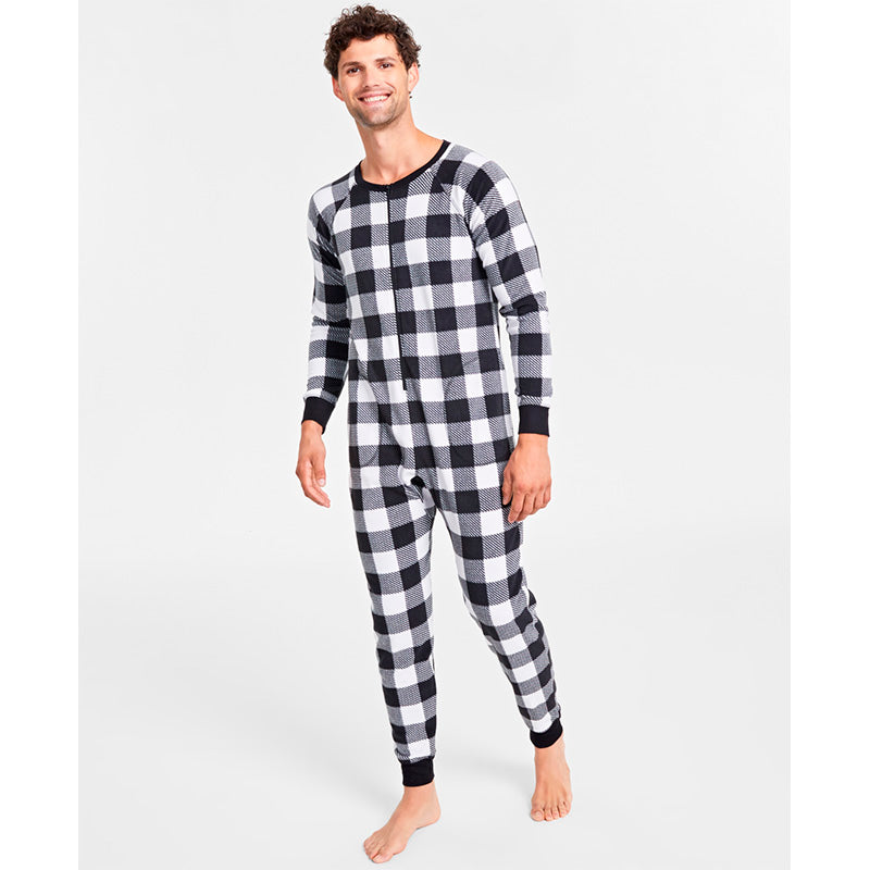 Family Pajamas Men's Checkered One-Piece Pajamas
