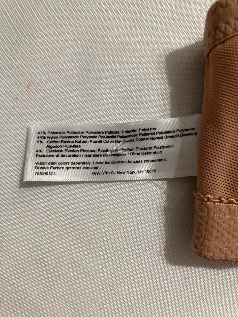 - 47% Polyester, 44% Polyamide, 5% Cotton, 4% Elastane