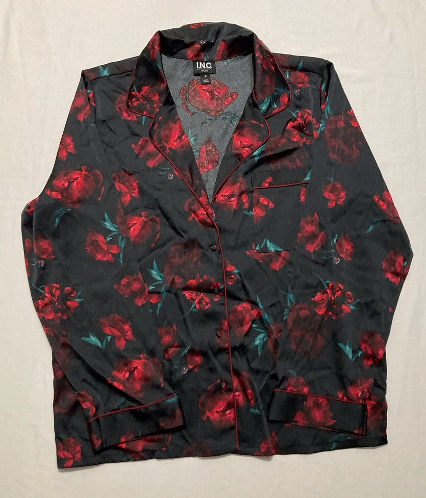 I.N.C 2-Pc. Piped-Trim Satin Pajamas Set RED M