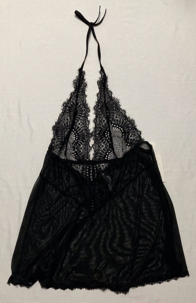 ICOLLECTION Sylvie Lace Halter Chemise Lingerie BLACK L