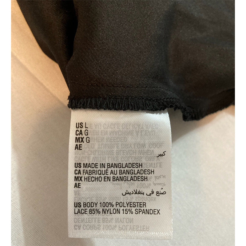 - Top: hits at hip; lace trim; V-neck; pullover styling; adjustable spaghetti straps