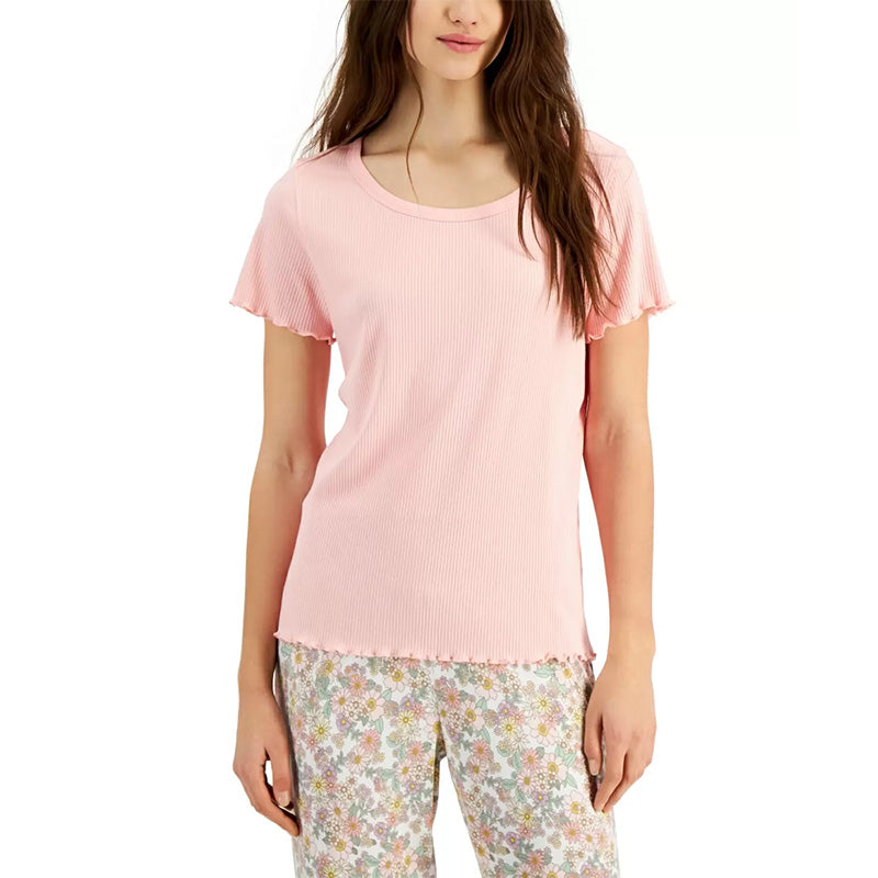 Jenni Lettuce Edge Solid Ribbed Sleep T-Shirt Coral XS