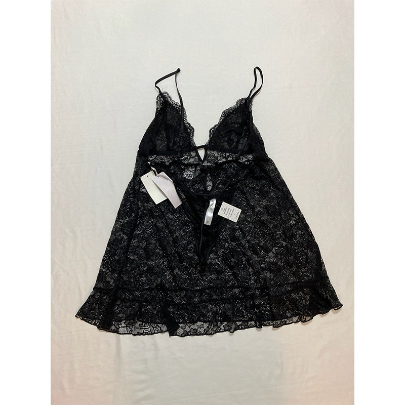 Linea Donatella Lace Babydoll Nightgown & Thong Lingerie Black L