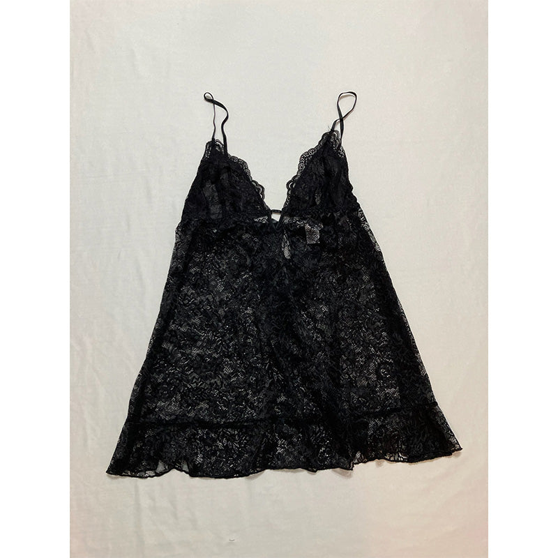 - Babydoll: approx. 29" from center back; lace fabric; front and back keyhole detail; V-neck; pullover styling; adjustable spaghetti straps