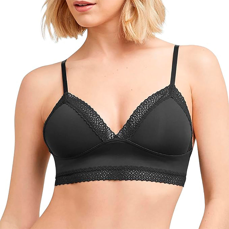 Maidenform Lacy Triangle Lace Bra with Convertible Straps Wireless Bralette Black L