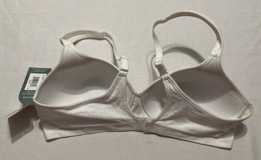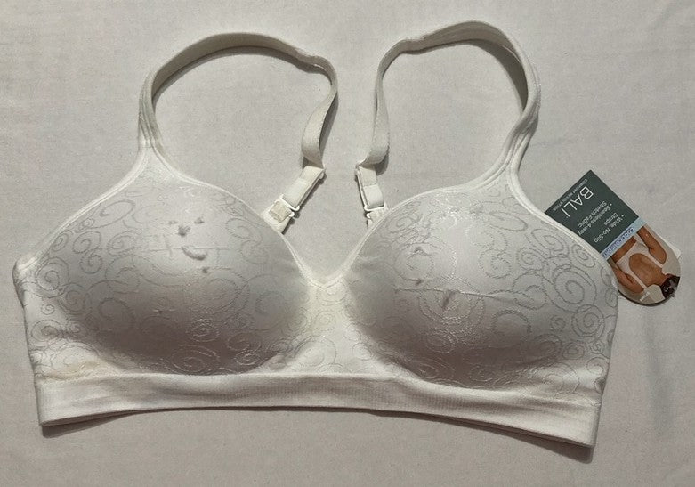 The BALI Comfort Revolution Full-Coverage Wirefree Bra in white, size 38C, offers a classic and comfortable design for women. Made from nylon, this opaque bra features a solid pattern with a hook & eye closure. The wireless underwire type provides support and comfort, making it a great choice for everyday wear. Designed by Bali, this full-coverage bra is easy to care for with hand wash only instructions, ensuring long-lasting quality and comfort.