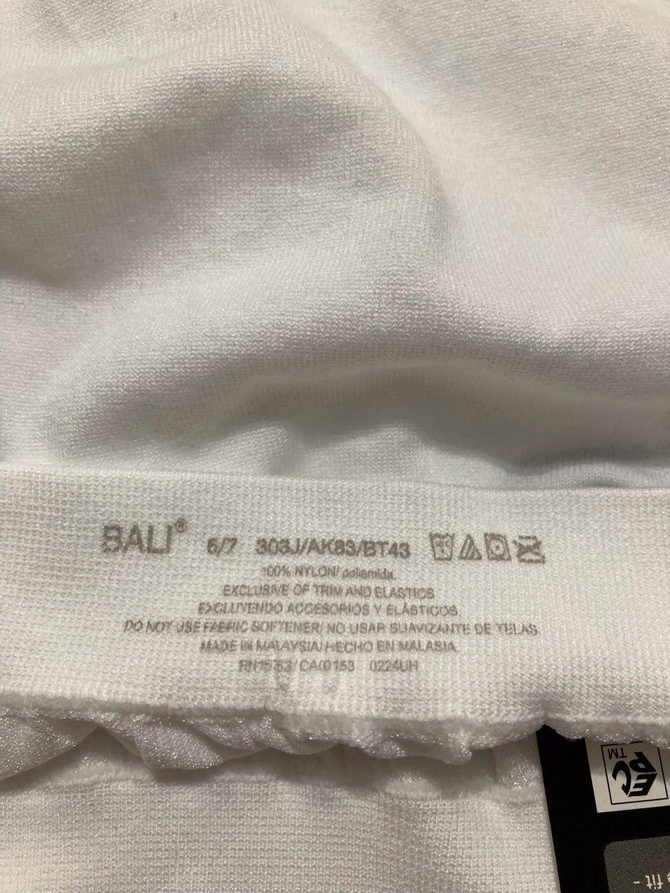 The BALI Seamless Hi-cut Panty in size 6 is a comfortable and stylish white brief made from nylon material. With a solid pattern and seamless design, this panty offers a compression area around the waist for a secure fit. It is machine washable for easy care and features opaque opacity for privacy. The Bali brand is known for its quality and this panty is a classic addition to any woman's wardrobe.