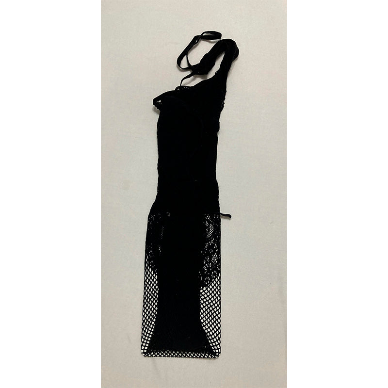 - Fishnet bodystocking with knitted “teddy” design