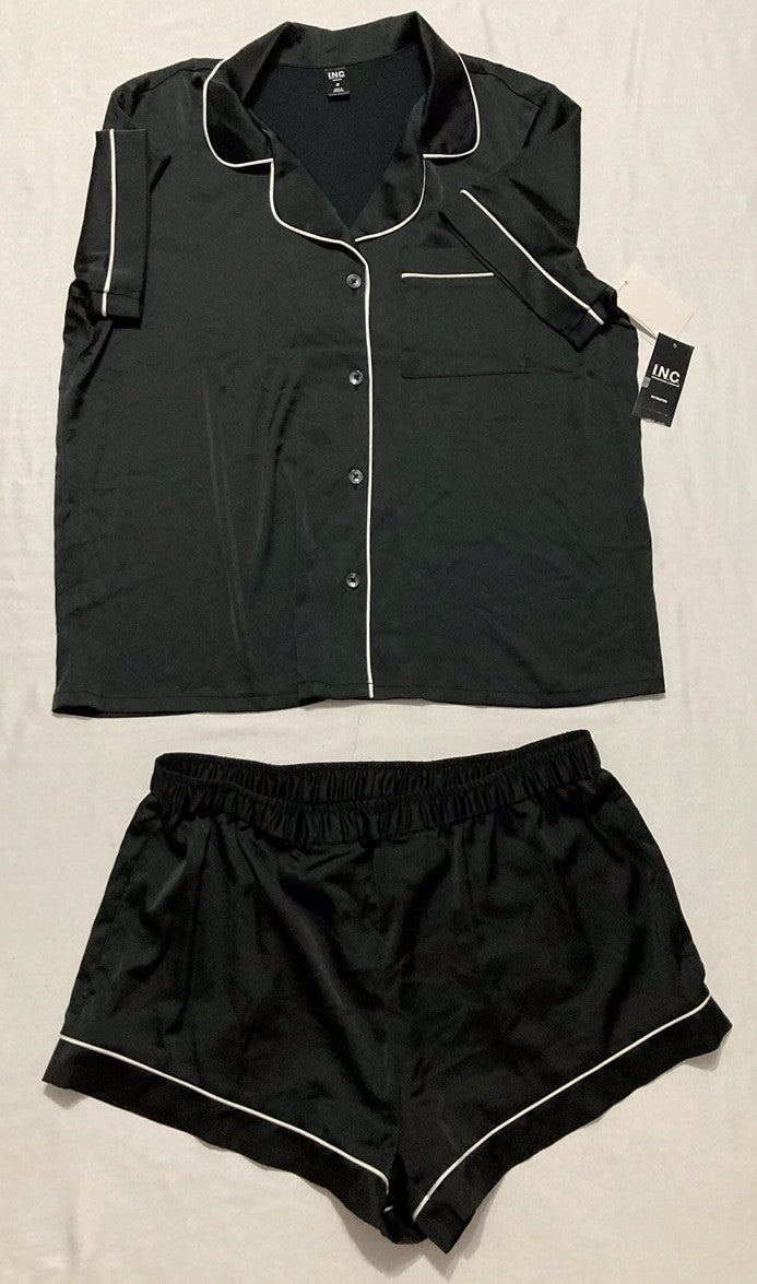 NWD I.N.C Stretch Satin Short-Sleeve Pajama Set BLACK M