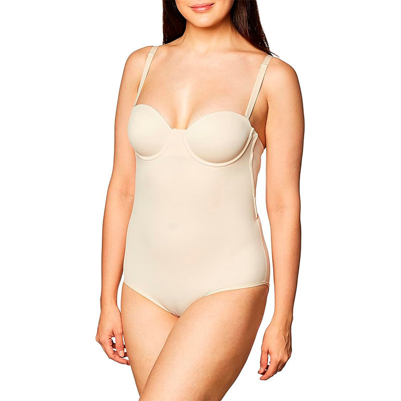 - FIRM CONTROL, LOW-BACK DESIGN WITH BRA – Your firm foundation for looking and feeling flawless, this body shaper is your go-to under open-back looks and higher hemlines. Extra-coverage foam underwire bra cups provide support, shaping, and opacity.