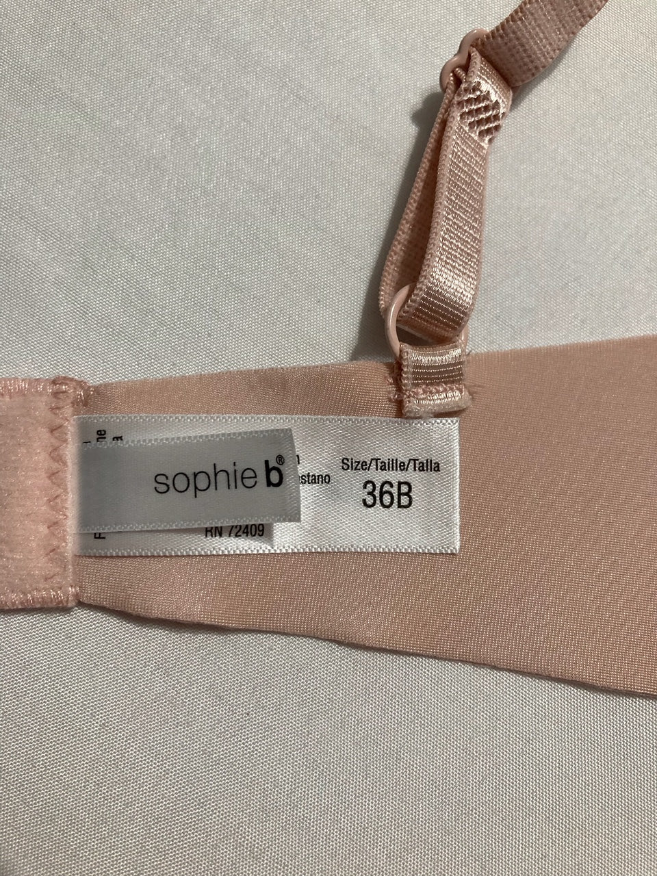 The SOPHIE B Molded invisible edge wire-free bra in ROSE 36B is a stylish and comfortable option for women. The bra features a solid pink color with a hook & eye closure, made from blended fabric. With a molded design and invisible edges, this bra provides support and a flattering fit without the wires. Perfect for everyday wear, this bra is designed by SOPHIE B and is a size 36B with a B cup size. The elegant rose theme adds a touch of feminine charm to this practical and practical lingerie piece.