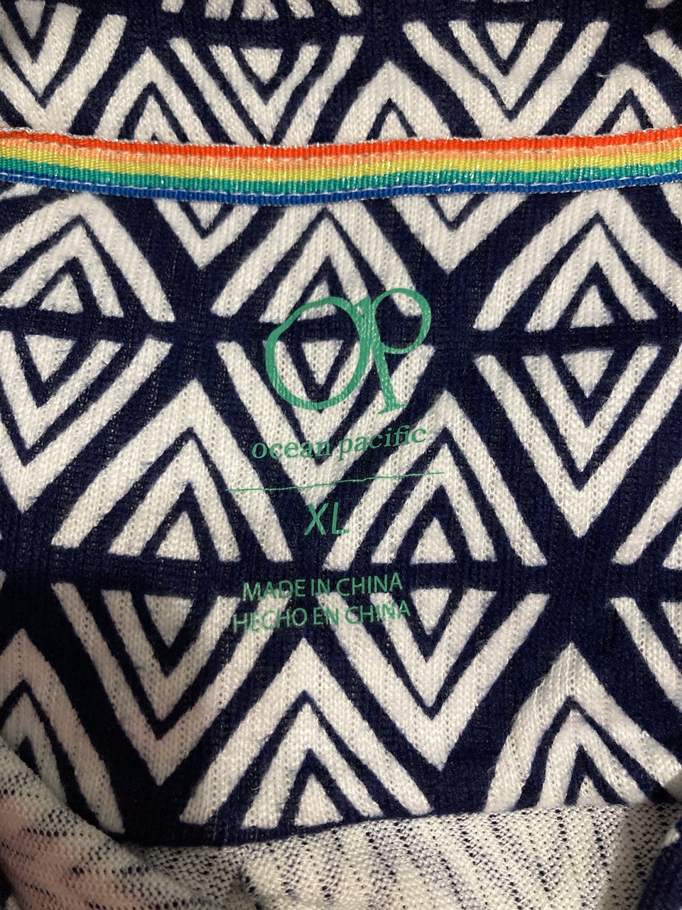 OCEAN PACIFIC Summer Lovin Pajama Set Button Down Shirt Sleep Shorts BLUE GEO XL