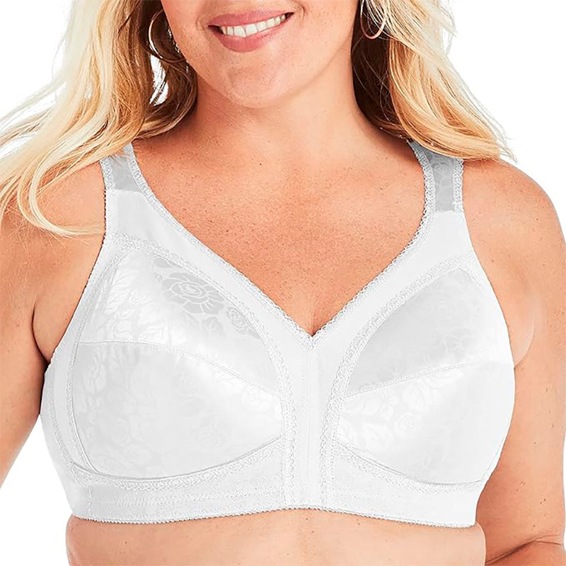 🌺SUPERB WIRELESS SUPPORT - Wireless bra with 4-way TruSUPPORT system provides higher sides for bulge control, fuller seamed cups for natural shaping, wider, cushioned straps for all-day ease, and a smoother back.THE FAMOUS M-FRAME DESIGN - Playtex bras have been flexibly supporting women in comfort for decades.THE PRESSURE'S OFF YOUR SHOULDERS - This wireless bra for women offers wider, cushioned straps that stay in place, adjust with ease, and won't dig or pinch.🌺
