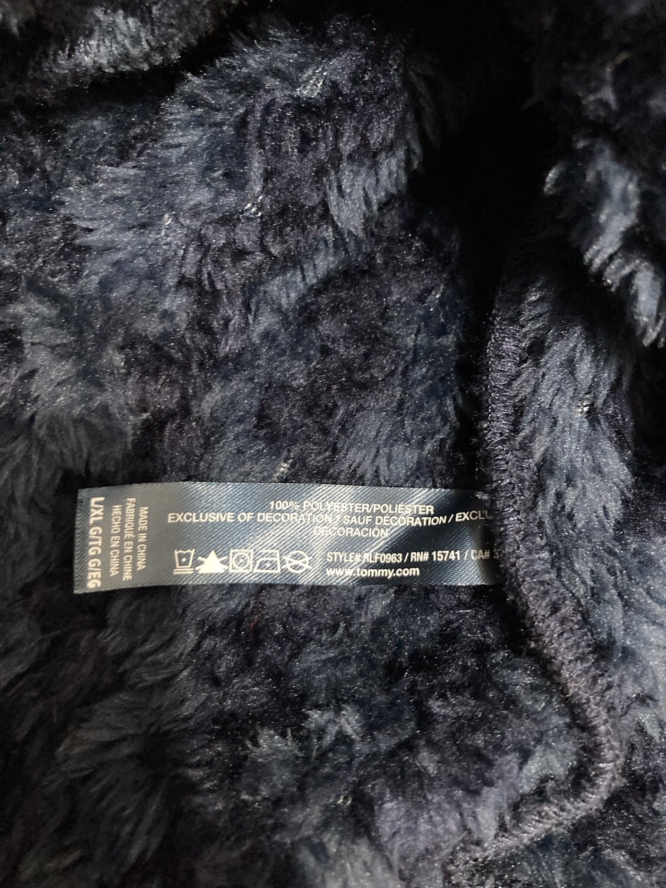 TOMMY HILFIGER Long Sleeve Plush Robe NAVY L/XL