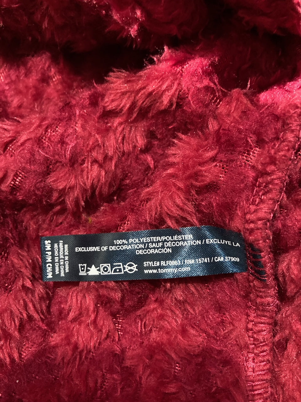 TOMMY HILFIGER Long Sleeve Plush Robe RED S/M